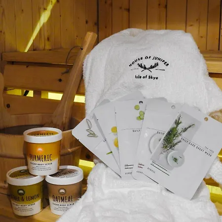 This Broadford accommodation offers self-catering amenities, such as a fully-fitted kitchen, and a dining area for guests' convenience. The kitchen also offers a toaster, an oven, and kitchenware. Spanish specialties are served at Harbour Restaurant, located 30 minutes' drive from the villa. Old Mill Road End bus station is within easy reach of The Cabins - House Of Juniper Villa, allowing guests to easily discover Broadford.